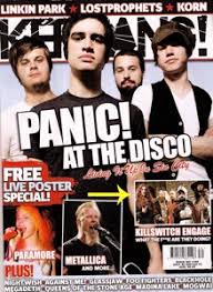 The Kerrang double page spread follows a similar pattern to the one used by NME, with a large image taking up the majority of a page with the interview laid out neatly next to the image. Kerrang however, used a variety of different colours for text and this helps the sub-headings to stand out and look eye-catching to the reader. They have also used a smaller image of the bands album cover to help the interview pages look more appealing and not as full of text; I like this idea of more than one image as I feel it breaks the double page up and looks much more eye-catching.
